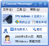 TM2005是腾讯TM的下一个升级版本,近日网上漏出了该版本的截图。喜欢TM的朋友可以先睹一下流流口水,小编也是TM的用户,对这个版本也是很期待。这个版本给小编的感觉是外观上更显简约,只是目前还不知道具体作了什么改进,相信应该是添加一下QQ2005版中标榜的新特性。大多数时候TM都是追随QQ进行改进,所以新版QQ发布不久就会看到具有新版QQ相同特性的TM版本上市。只希望TM不要像QQ那样越做越“臃肿”,毕竟针对办公人员的TM还是越实用越好。如果你对TM2005十分喜欢,那么就到我们的论坛上和大家一起讨论一下吧。