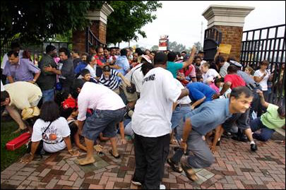 近日,抢购50美元的Apple iBook的热潮已经演变成为了一场暴力冲突。有人被推倒在人行道上,有人被折叠椅打到,还有人差点被车撞伤。19岁的Latoya Jones的一只凉鞋在抢购中被挤掉,她只能在灼热的柏油路上光着脚跛行……这是美国维吉尼亚州的低价Apple iBook发售时的场面。