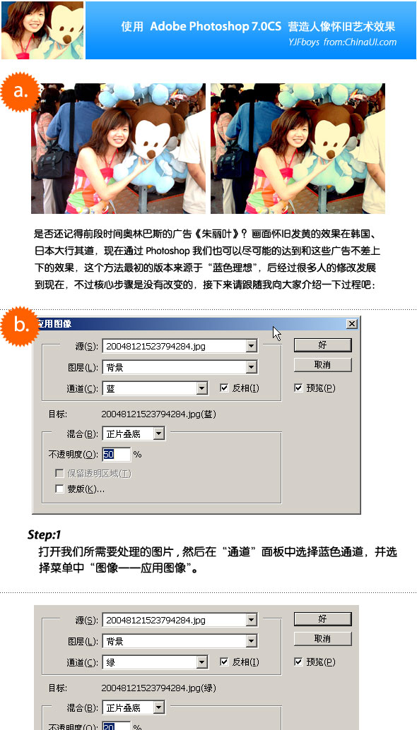 看多了色彩绚丽的彩色照片后,如果有机会再看看以前那种图像模糊,略带泛黄的 老照片,可以说别有一种风情,常常引起人们绵绵地怀旧情愫。本文介绍如何利 用Photoshop将现在的彩色照片制作成老照片的具体操作方法。