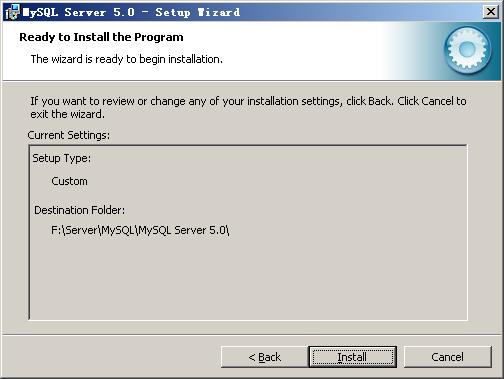 确认一下先前的设置,如果有误,按“Back”返回重做。按“Install”开始安装。
