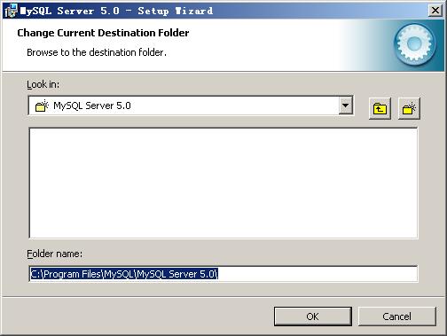 填上安装目录,我的是“F:\Server\MySQL\MySQL Server 5.0”,也建议不要放在与操作系统同一分区,这样可以防止系统备份还原的时候,数据被清空。按“OK”继续。