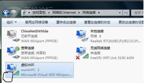 开启成功后,网络连接中会多出一个网卡为“Microsoft Virtual WiFi Miniport Adapter”的无线连接2,为方便起见,将其重命名为虚拟WiFi。若没有,只需更新无线网卡驱动就OK了。