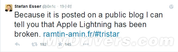 今天,对于苹果来说不是个什么好日子,因为黑客i0n1c在推特上表示,已经有人成功破解了苹果Lightning连接器。