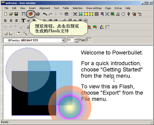 答:如果你是个Flash“苦手”,但又很想制作一些Flash,那么这里推荐你使用Powerbullet Presenter,通过它可以制作简单的Flash动画,更重要的是它可以帮你轻松制作Flash报表文件。