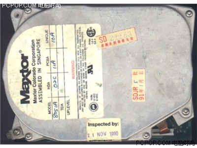 不过从仅有一点点资料中我们还是知道了它的容量为20MB,应该是较早一批3.25英寸硬盘了,产于1990年。