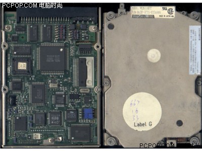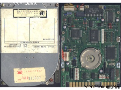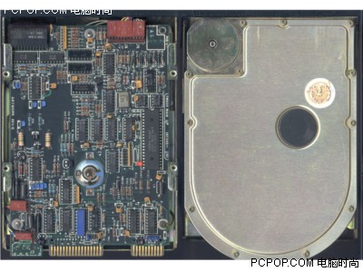 从硬盘电路板密集的电子元件(这是由于芯片的集成度不高而导致的)我们能看出,当时的制造工艺和现在相比简直就是一个地上一个天上。