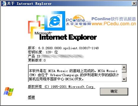 IE 6.0中的“关于”,有没发现界面变漂亮了?