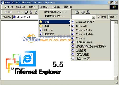 IE 5.5的“收藏”夹,比以前多了不少默认的链接