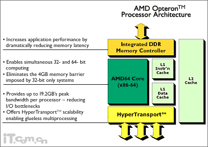 操作系统方面,微软已经承诺将在自己的Windows中加入对AMD Opteron处理器的支持,而SuSe在Linux支持方面处于领先地位;其他领先的Linux和UNIX厂商那里Opteron也将在近期获得支持。