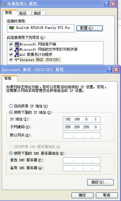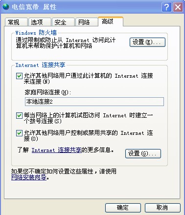 (其中一台连接猫,作为服务器吧.本地连接是连接猫的,本地连接2是连接一外一台电脑)