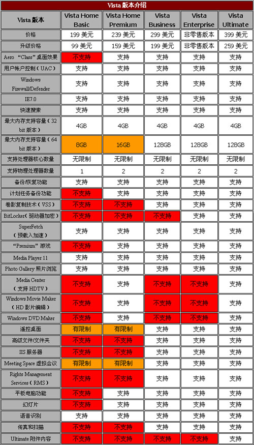 本次“微软”针对“Vista”操作系统进行了有史以来最为详细的版本划分。下面先来让我们看看“Vista”各个不同版本的主要区别。