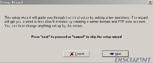 安装完成后会出现一个向导让你建立一个域和账号。在这里点Cancel取消向导。用向导生成的账号会带来一些问题,所以下面采用手工方式建立域和账号。(见图4)