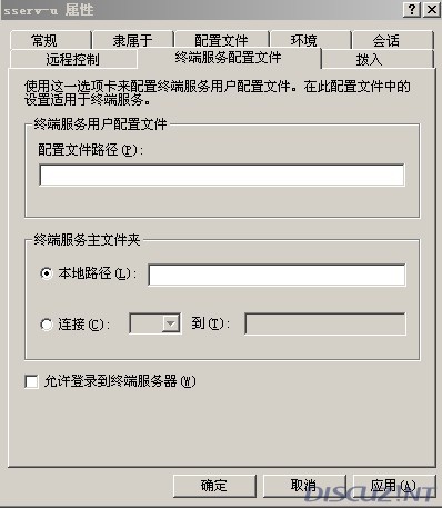 从“终端服务配置文件”选项里取消“允许登录到终端服务器(W)”的选择,然后点击确定继续我们的设置。(见图10)