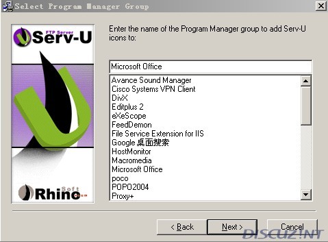 下图是生成的开始菜单组里的文件夹的名字,建议更改成比较不像SERV-U的名字,或者是删除该文件夹。(见图3)