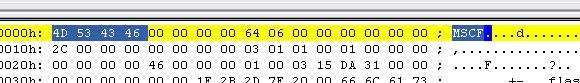 现在用UltraEdit32(也可以用记事本打开)分别打开原始的FLASH.OC_和刚刚重建的这个FLASH.OC_ , 文件头均为MSCF [如图1]