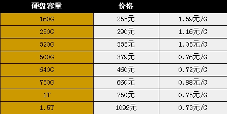 虽然硬盘的每G价钱不断创新低,500G以上的硬盘每G基不足0.8元,价格非常低廉。但这不是唯一选购标准,毕竟并非所有人都需要大容量硬盘,量体裁衣同样重要。