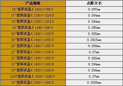 为了更方便玩家在选购液晶时更直观地了解市场常见的各尺寸规格液晶地点距,我们做了一个表格方便大家查询了解。