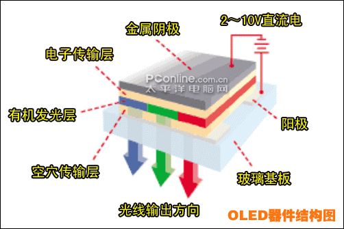 很多网友容易把OLED和目前厂商炒作比较多的LED背光联系在一起,事实上OLED和LED背光是完全不同的显示技术。LED背光属于LCD范畴,都是液晶技术,原理基本相同。LCD技术可以简单的理解为,外界施加电压使液晶如闸门般地阻隔背光或让背光穿透,进而将光线投射在不同颜色的彩色滤光片中形成图像。所以LED背光属于液晶技术,只是背光源不同,LED背光使用发光二极管作为背光,传统的LCD采用CCFL冷光灯管作为背光。而OLED是通过电流驱动有机薄膜本身来发光的,发的光可为红、绿、蓝、白等单色,同样也可以达到全彩的效果。所以说OLED是一种不同于CRT和液晶技术的全新发光原理。下文中笔者将给大家详细介绍OLED的发展历程及技术特点。