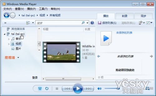 设置完成后,其他电脑运行Windows Media Player时,在左侧的窗格中既可观察到本机的播放列表,还可以在“其他媒体库”下观察到共享了媒体文件的电脑图标,就能找到该电脑共享的播放列表,从而播放其共享的媒体文件(如图)
